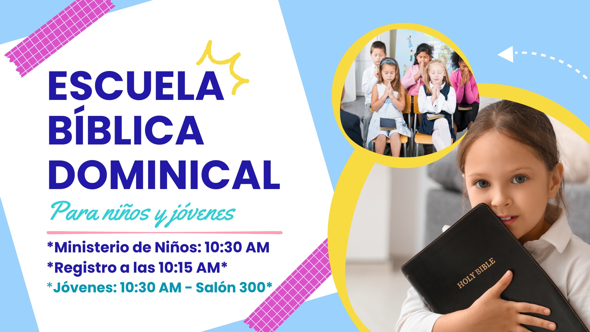 Escuela bíblica para niños – domingo / 10:30 am